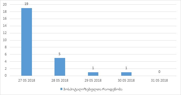 პაციენტთა რაოდენობა ჰოსპიტალიზაციის თარიღების მიხედვით