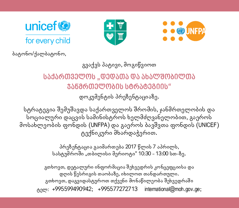 | Cc : | Sopo Belkania <sbelkania@moh.gov.ge>; Nino Shubladze </o=ExchOrganization/ou=Exchange Administrative Group (FYDIBOHF23SPDLT)/cn=Recipients/cn=22ef4903bb4e4976a6eaa4619277fbcd-Nino Sh>; Salome Goginashvili </o=ExchOrganization/ou=Exchange Administrative Group (FYDIBOHF23SPDLT)/cn=Recipients/cn=51898f14f9e74e8489982dfe4c1e870f-Salome>; mnikoleishvili@moh.gov.ge; tea chubinidze' (tchubinidze@moh.gov.ge) <tchubinidze@moh.gov.ge> |
