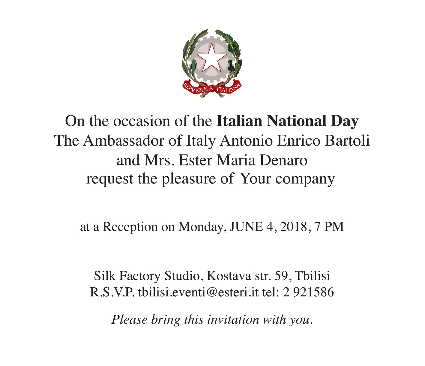 | Subject : | Fw: Invitation: Italian National Day- June 4, 2018, 7 PM - Silk Factory Studio |