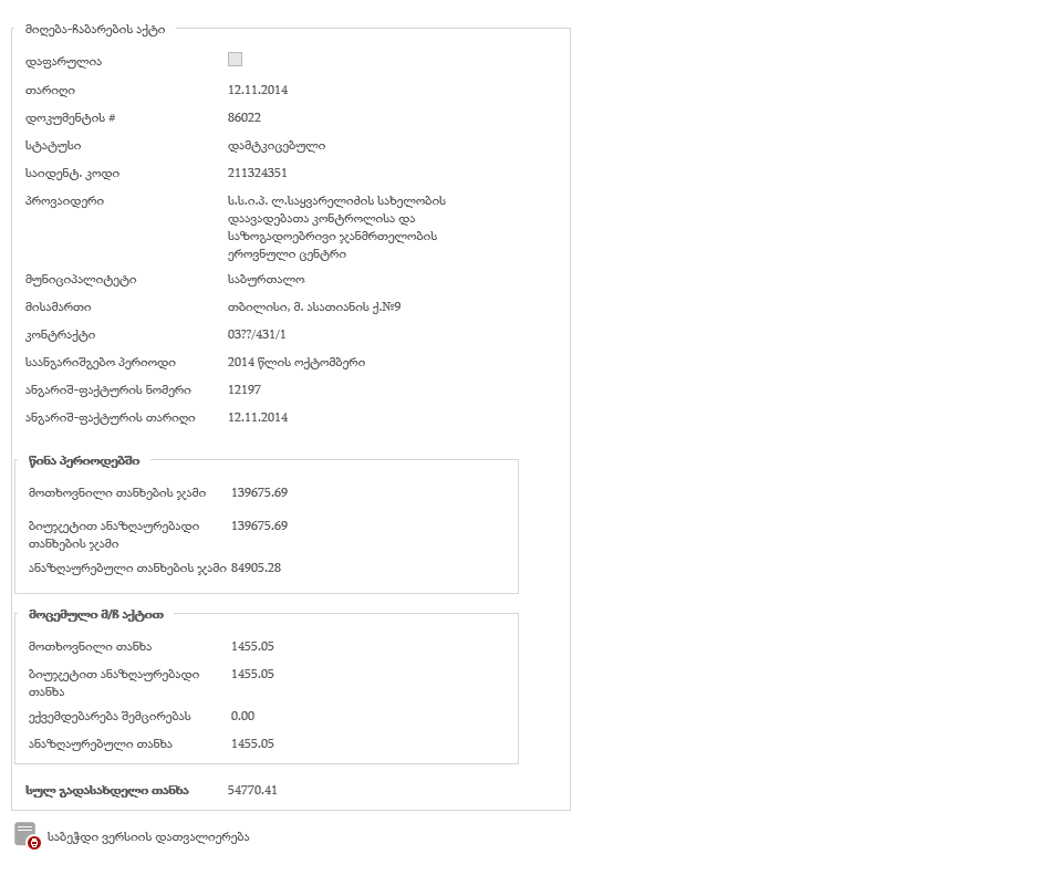 ფინანსურ მოდულში დაგენერირებული აქტი: