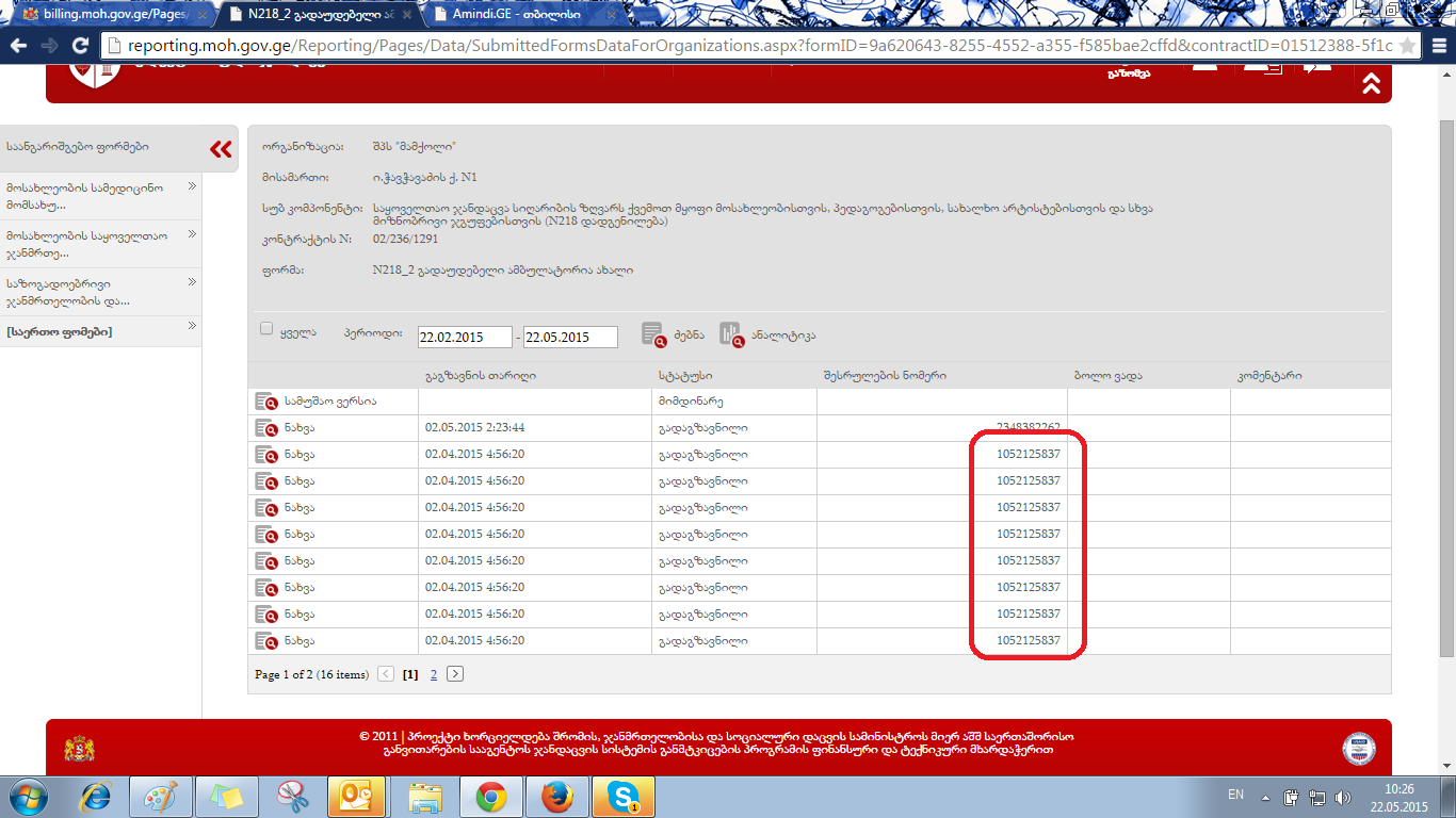 კლინიკამ (ს/კ 242005977) უკან დაბრუნებული შესრულება (შ/ნ 1052125837) გადმოაგზავნა და გაადუბლირა, გთხოვთ გაასწოროთ.
