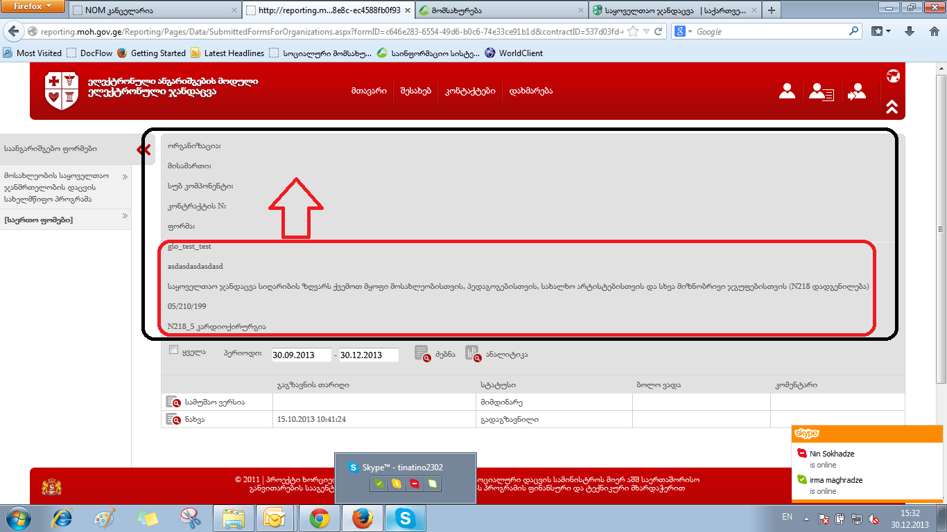 ნებისმიერ ფორმაზე შესვლისას ორგანიზაცია: მისამართი: სუბ კომპონენტი: კონტრაქტის N: ფორმა ამ