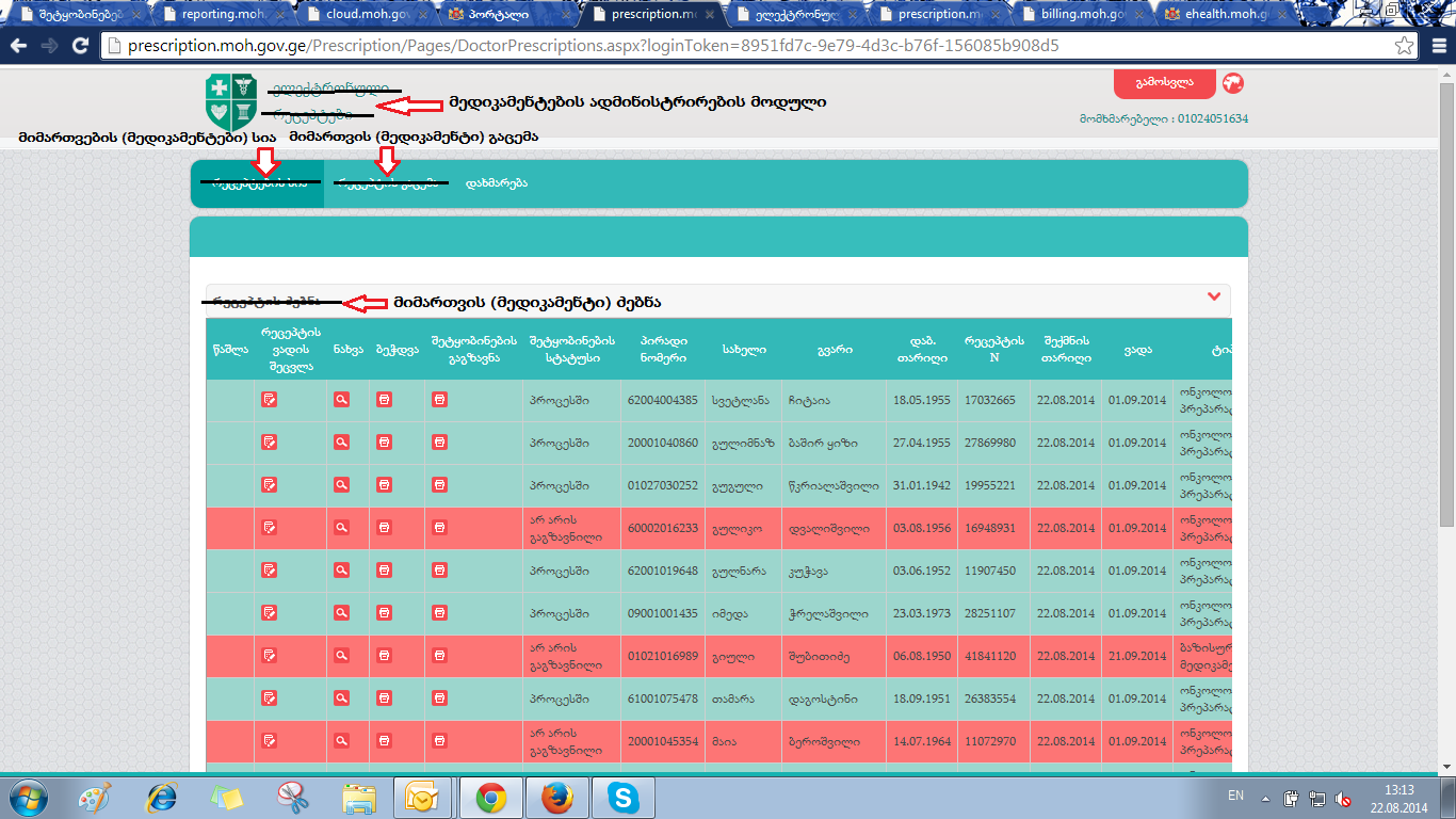 ერქვას - მედიკამენტების ადმინისტრირების მოდული. ასევე როდესაც შევდივართ პროგრამაში