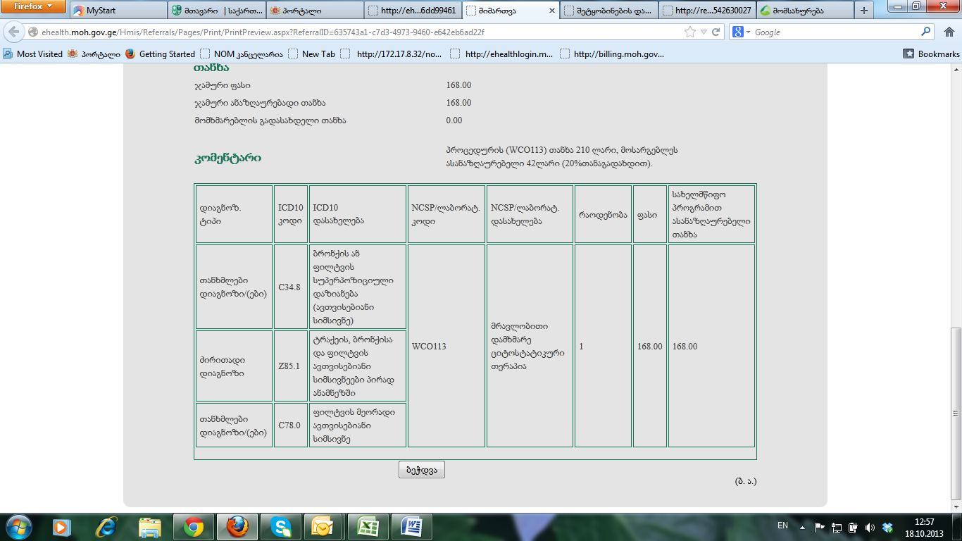 ანგარიშგებააში მიმართვაში მითითებული თანხის 168 ლარის ნაცვლად წერს 535.20 ლარი.