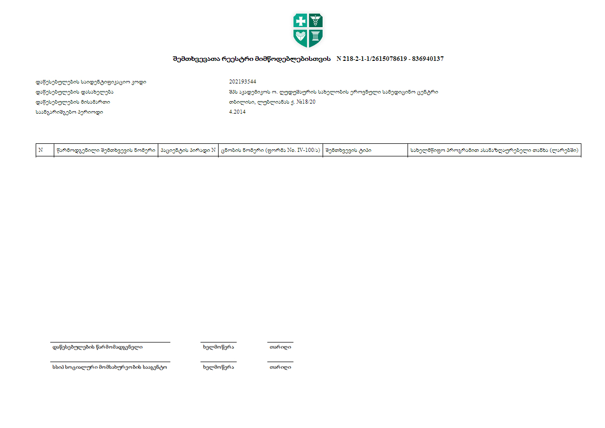 გიგზავნი უწყისების ნიმუშებს