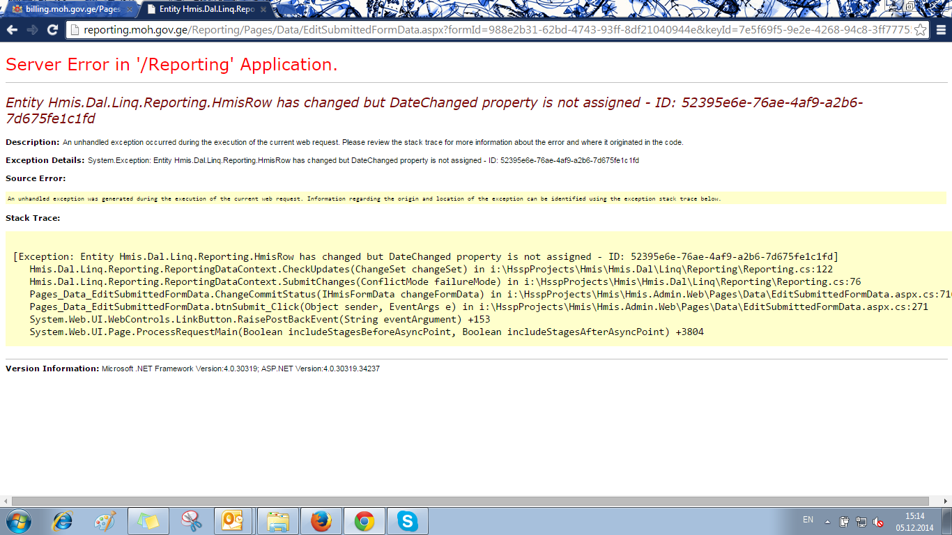 კლინიკა (ს/კ200007143) ვერ გვიგზავნის უკან დაბრუნებულ რეესტრს. რომ აჭერს გადაგზავნას გამოდის ერორი. ფორმა 36_8 მშობიარობა საკეისრი კვეთა. შესრულების ნომერია 1503073386.