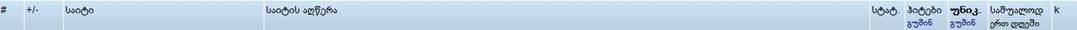 ![[ ]](/icons/unknown.gif) | ალფას მიმართვები.xlsx | 2025-11-21 06:47 | 137K | |