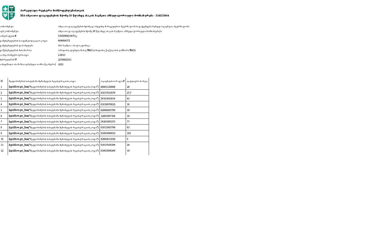 ![[ ]](/icons/unknown.gif) | აცრების ბარათი - 1 ნაწილი.xlsx | 2025-11-21 06:40 | 15K | |