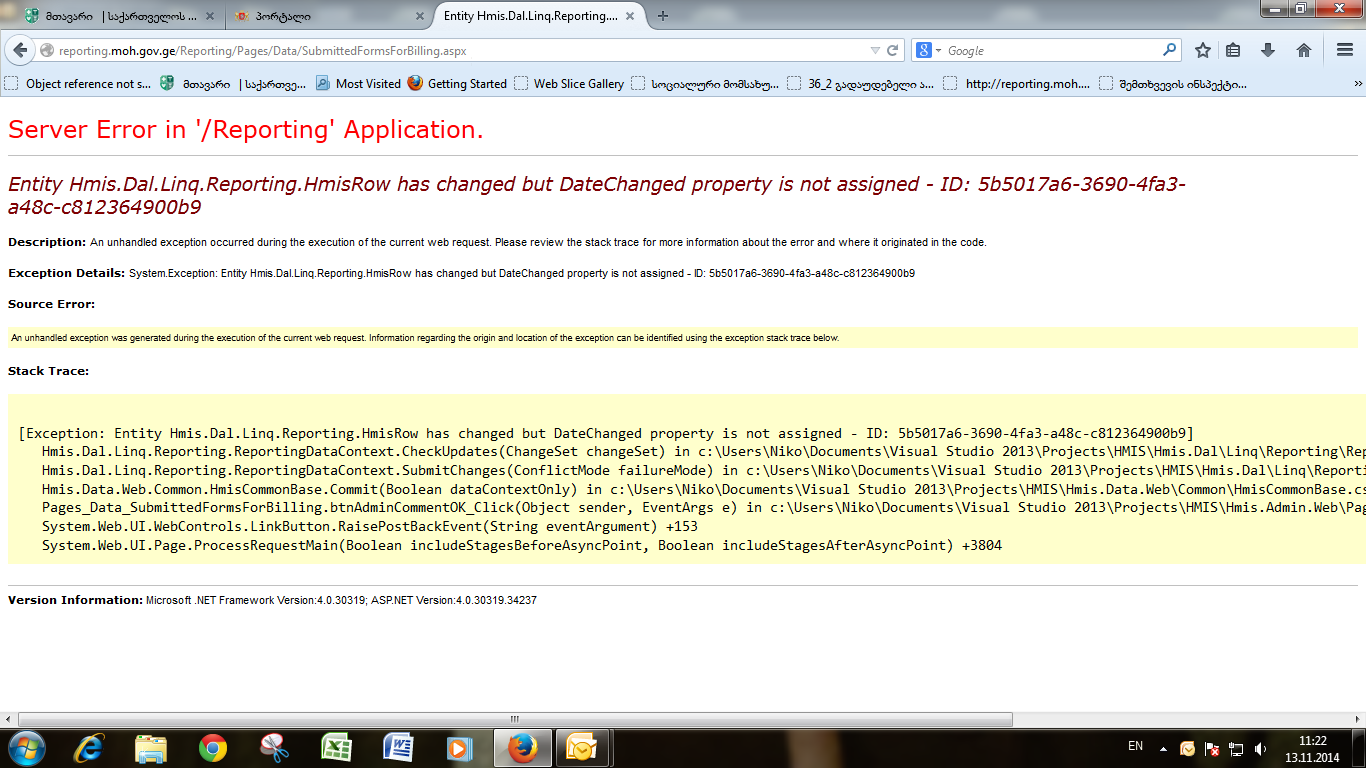შესრულების დამუშავებისას ჩვენ თანამშრომლებს ერორი აქვთ. ასევე ერორია შესრულებული სამუშაოს კლინიკაში გადაგზავნის დროს. გთხოვთ, გადაამოწმოთ.
