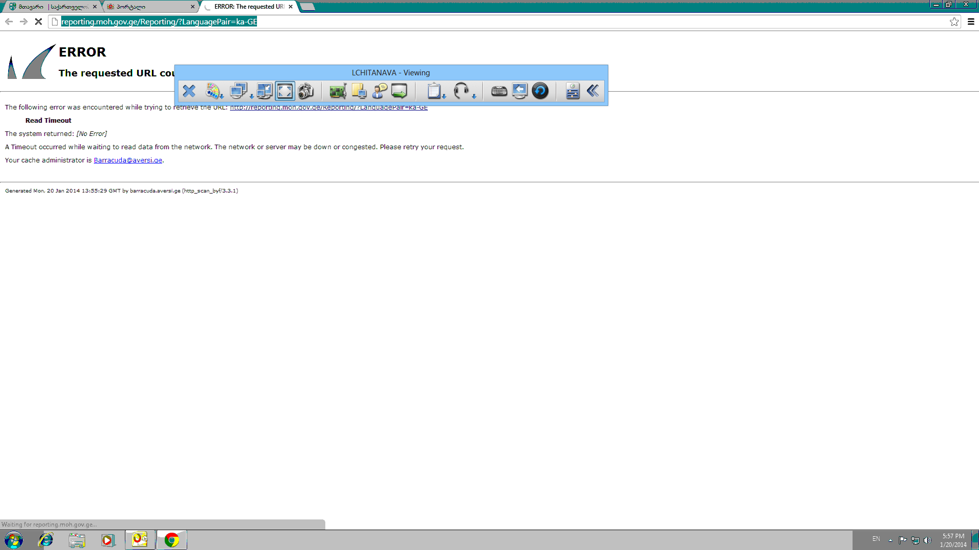 როგორც შეცდომიდან ჩანს, სერვერი არ პასუხობს მოთხოვნას: