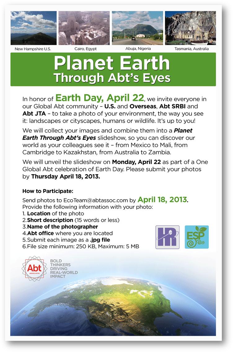 | Subject : | Happy Earth Month! Participate in the Global Abt Celebration! |