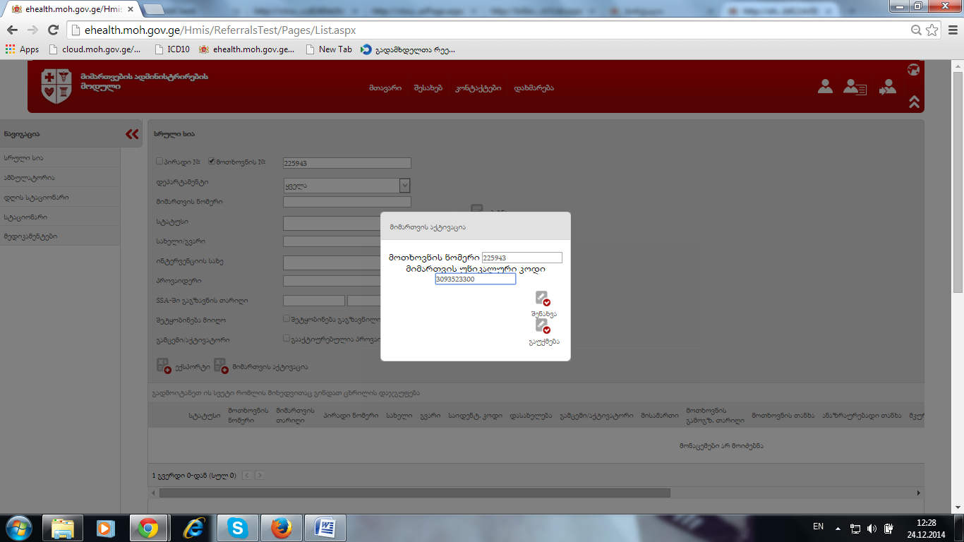 მოთხოვნა გააქტიურა კლინიკამ მაგრამ საერთო სიაში არ იძებნება. აქ ის შემთხვევაც ფიქსირდება როცა რეკვიზიტების გვერდზე და კალკულაციის გვერდზე არსებული კლინიკები ერთმანეთს არ ემთხვევა, რაც უკვე მოვიწერე.