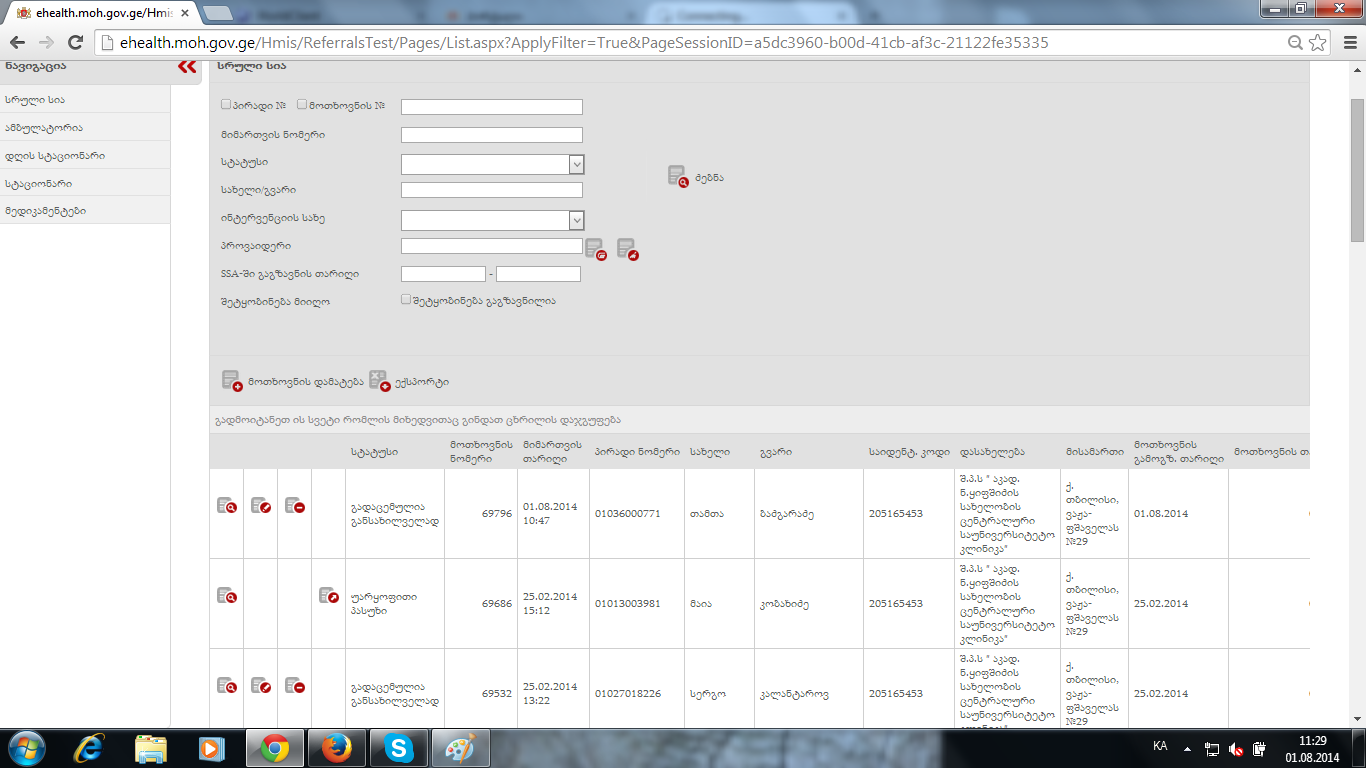 ანუ შევ� �ვსე რეკვიზიტების გვერდი და გადავედი ფორმა100- ზე, დაიგნოზების და ჩარევების დამატების დროს შევამჩნიე რომ არ ემატებოდა, ჩავხურე ფანჯარა და გამოვიდა მესიჯი- იხილეთ ბმული 1, შემდეგ ისევ თავიდან ვცადე მაგრამ საერთოდ არ იმატებს- ბმული 2.