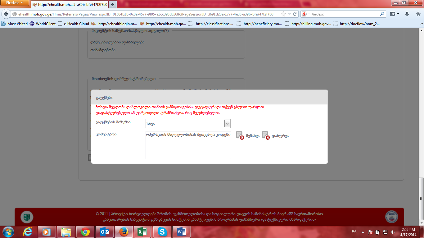 Subject: RE: დაბლოკილი ლიმიტი