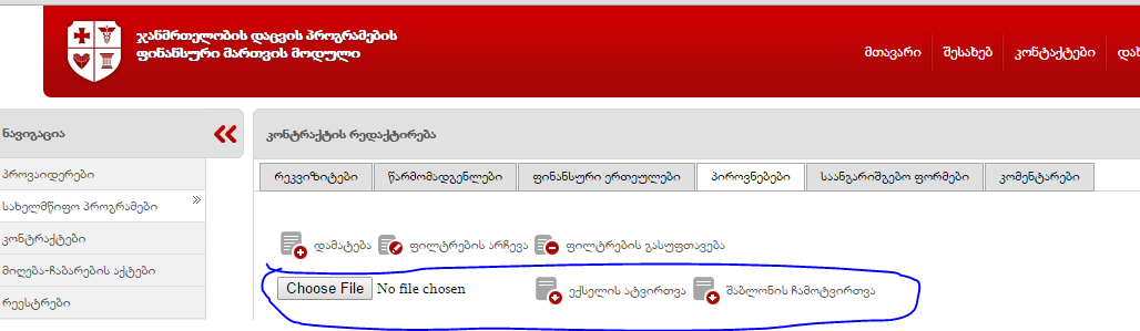 ხელშეკრულების რედაქტირების გვერდზე პიროვნებების ჩანართში დამატებულია ექსელის ფაილით ანგარიშის ნომრების ატვირთვის შესაძლებლობა.