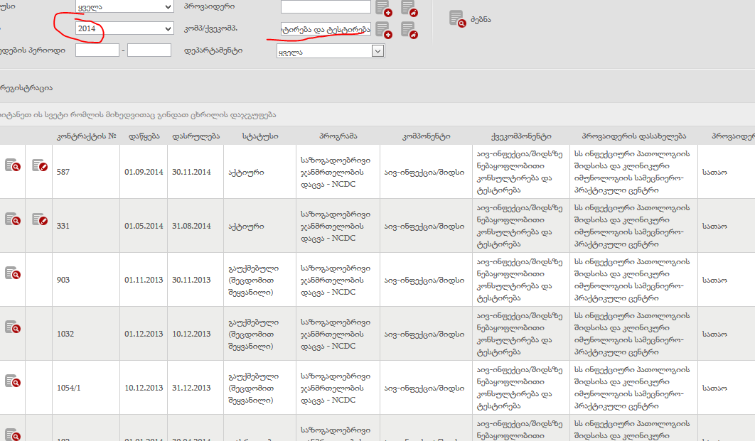 ფორმები თავისი ვალიდაციებით მზად არის, მაგრამ გადავაწყდი პრობლმას,  რომ ვნახე „აივ-ინფექცია/შიდსზე ნებაყოფლობითი კონსულტირება და ტესტირება“ -კომონენტი. 2015 წელს არცერთი ხელშეკრულება არ არის დამატებული.