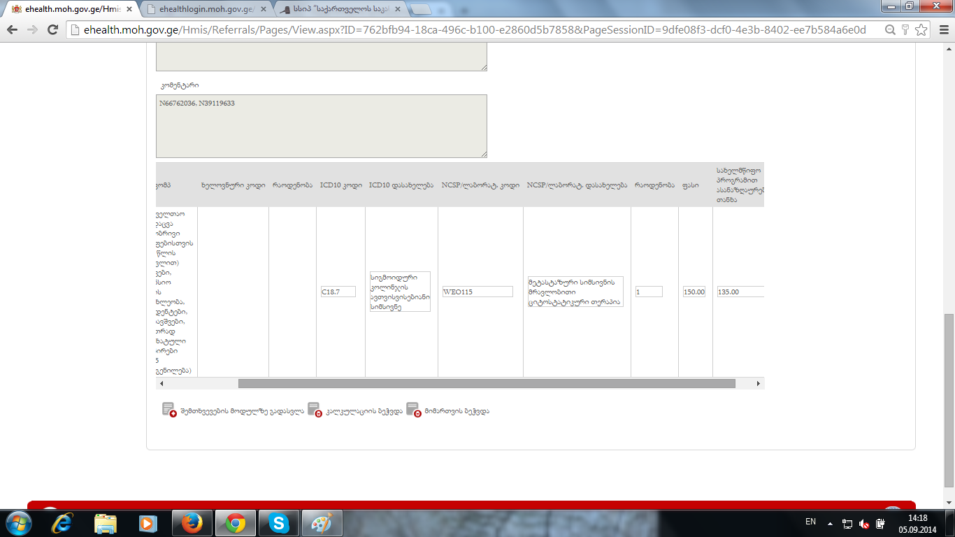 მოკლედ სატესტოდ შევქმენით ერთი მიმართვა ( N156550) და ფორმა 100- ზე არსებული დიაგნოზი ჩარევის გარეშე რომელიც უკვე კალკულაციის გვერდზე აღარ არის, შეტყობინების მოდულში სინქრონიზაციის დროს მაინც მოაქვს. იხილეთ ბმული.