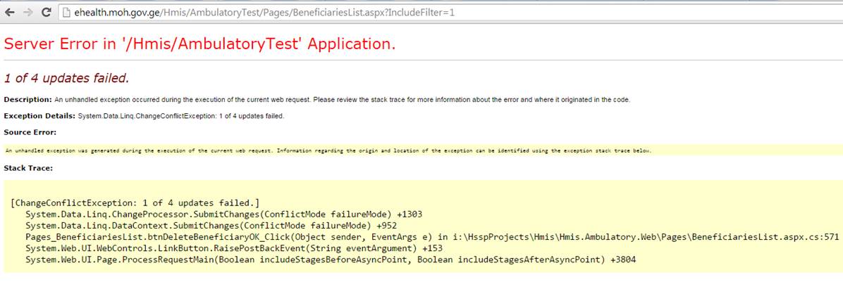 1. აივ/ინფექცია შიდის კომპონენტში დავამატე ბენეფიციარი, მოვძებნე და ნახვას დავაჭირე- სისტემიდან გამომაგდო. http://ehealth.moh.gov.ge/hmis/ambulatorytest