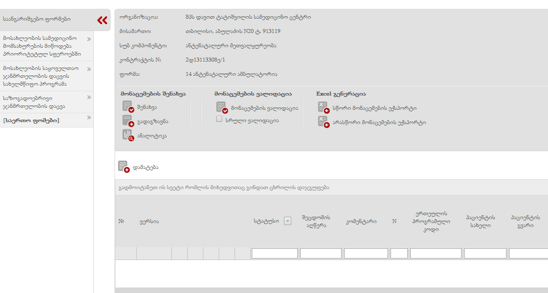 ელ.ანგარიშგების მოდული სამედიცინო დაწესებულებებისთვის