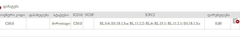 ლაბორატორიული კოდები საჭიროა წამოიღოს შემდეგ ფორმებზე: