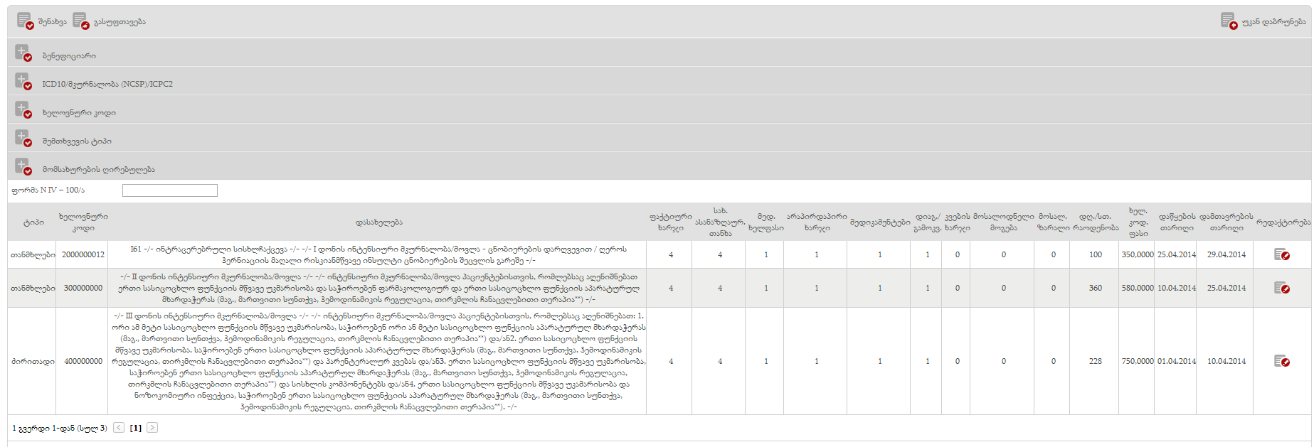 კლინიკა (ს/კ404907730_8 პაროლი: geohospitals1) რეპორტინგში ხელოვნური კოდების განფასების დროს არ აქვს მნიშვნელობა რომელ კოდს განაფასებ პირველად - პირველ კოდზე ითვლის სახ. პროგრამით ასანაზღაურებელ თანხას დანარჩენებს არ ითვლის. ერთერთი შემთხვევის # 2753803606. გთხოვ გადაამოწმო.