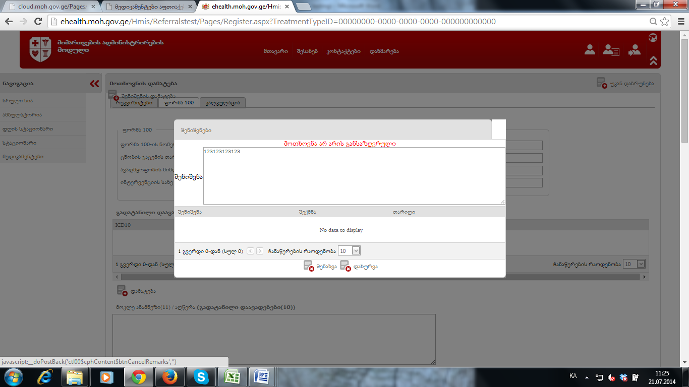ფორმა 100-ზე შენიშვნის დამატება მინდა და   შენახვას არ მაკეთებინებს- იხილეთ ბმული-1