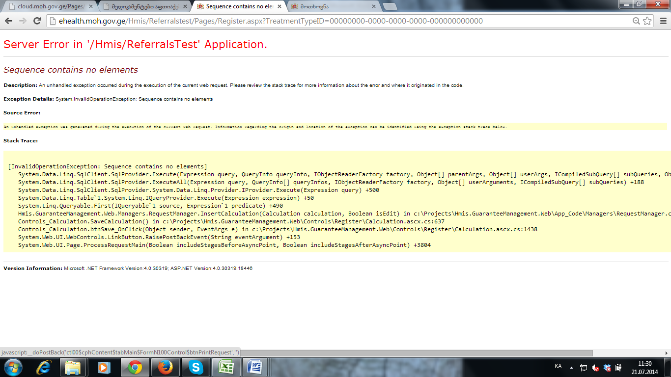 კალკულაციაზე დიაგნოზების რედაქტირების დროს გამოაქვს შეცდომა. იგივე შეცდომა გამოიტანა როცა სულ წავშალე დიგნოზები კალკულაციის გვერდზე და ახალს ვამატებდი.