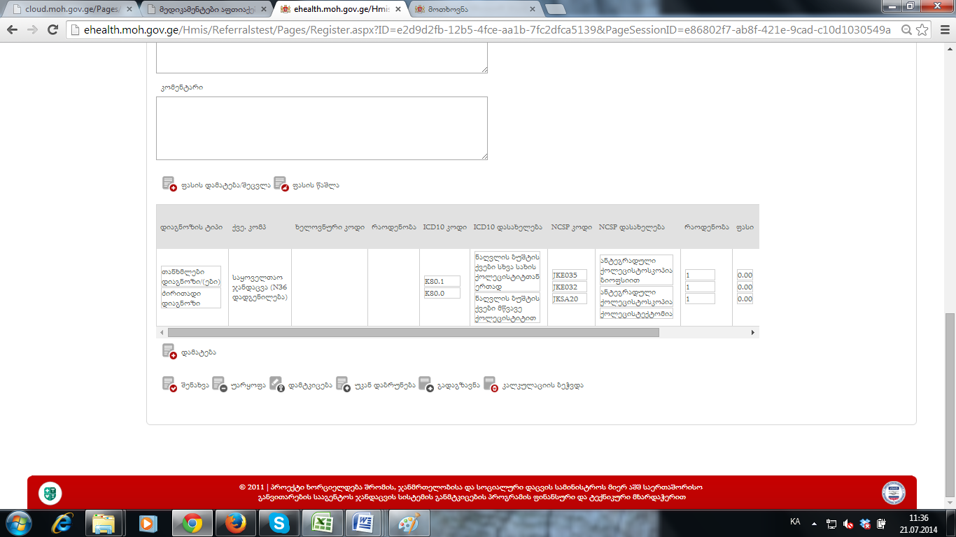 კალკულაციის გვერდზე icd10 კოდის დამატების დროს-შესაბამისი ბმული
