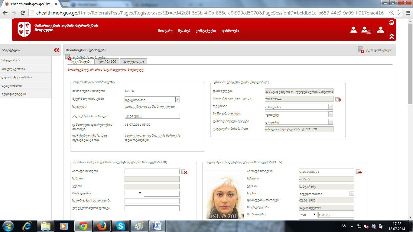 უარვყავი მოთხოვნა, მერე სტატუსი აღვუდგინე და რეკვიზიტების გვერდზე მობილურის ნომერი ჩავწერე და ვიანხავდი და წერს, რომ საქართველოს მოქალაქე არ არისო თამთაზე : ))-იხილეთ ბმული