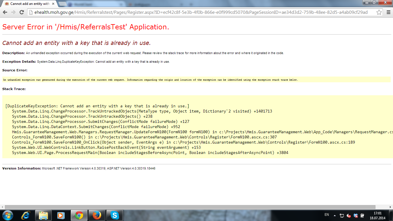მე სატესტოზე ვიყავი და ფორმა 100- ის შენახვის დროს იგივე ერორია მგონი...