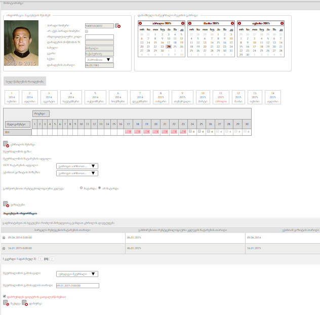 62006008999 - პირად ნომერზე არის ერთი პასიური შემთხვევა და ერთი აქტიური შემთხვევა, დარეგისტრირებული 2014-06-10 12:07:55 თარიღში