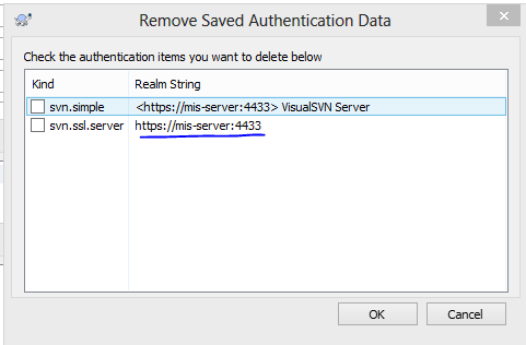 (მაგ.https://baseSvnRepo:4433/svn/Hmis) რადგან სერვერის IP მისამართის შეცვლის შემთხვევაში მოგიწევთ თავიდან checkout-ის გაკეთება