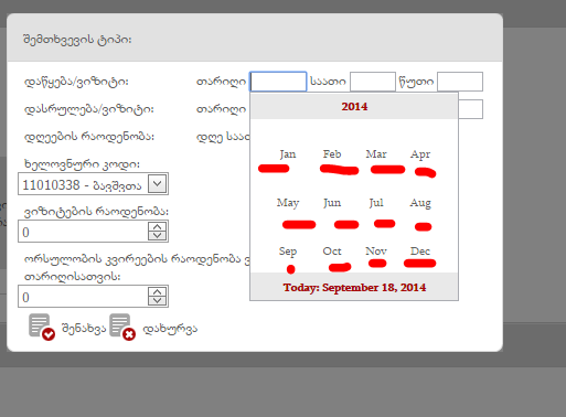 მარჯვნივ არის დაწყების და დასრულების თარიღის უჯრები, სადაც იხსნება მხოლოდ სექტემბრის თვე. შესაბამისად, შეუძლებელია მაგ. ივნისში ან აგვისტოში დაწყების დაფიქსირება