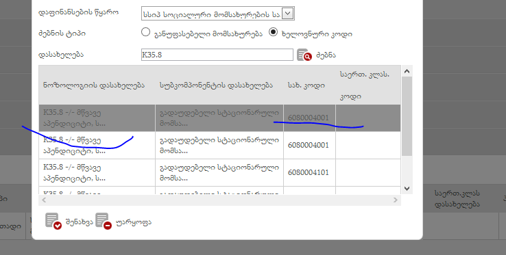 მაგალითისათვის შემთხვევის N 2480752497 ვნახეთ და აღმოვაჩინეთ, რომ აღნიშნულ შემთხვევას დამატებული ქონდა ICD10 – K80.0 . შემთხვევბის რეგისტრაციაში წასაშლელია აღნიშნული დიაგნოზი და დასამატებელია ახალი, ისე რომ დიაგნოზის დამატებისა და დასრულების თარიღი უცვლელი დარჩეს. მაგალითისათვის გიგზავნით „სქრინშოტს“