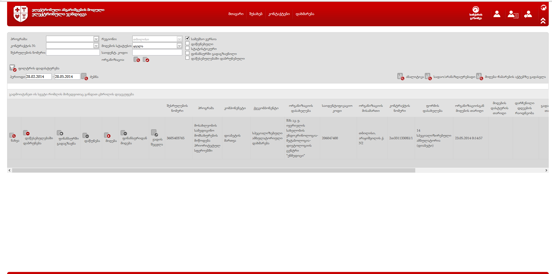 შევედი ამ მომხმარებლით და ჩანს გამოგზავნილი სამუშაო, თუ სხვა დაწესებულების გამოგზავნილი სამუშაო არ ჩანს გთხოვთ იმ დაწესებულების საიდენტ. კოდი მომწეროთ და ფორმა რომელიც გამოაგზავანა