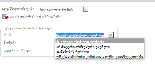 ერთი კითხვა მაქვს, გუშინ იყო მოსული ჩაჩავადან ქალბატონი მანანა სვანიძე, ანტენატალურ პროგრამაში გვთხოვენ მივუთითოთ თანხმობის წერილის ნომერი და ვაუჩერის წერილის ნომერი, ორივე სავალდებულო ველიაო, ჩვენ სისტემა ისე გვაქვს აწყობილი რომ მხოლოდ ერთის მითითებას შეძლებს, ვინაიდან ასარჩევი ჩამოსასლელი სიაა. იხ სურათი. ორივე ველი სავალდებულოა მაგდა?