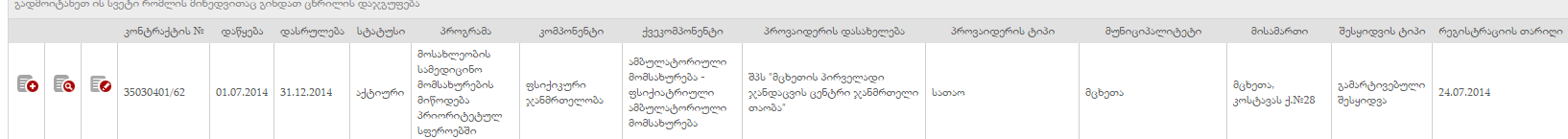 კონტრაქტი განახლებულია და მიბმულია N14 ამბულატორიული და N10 მოსარგებლის ფორმა