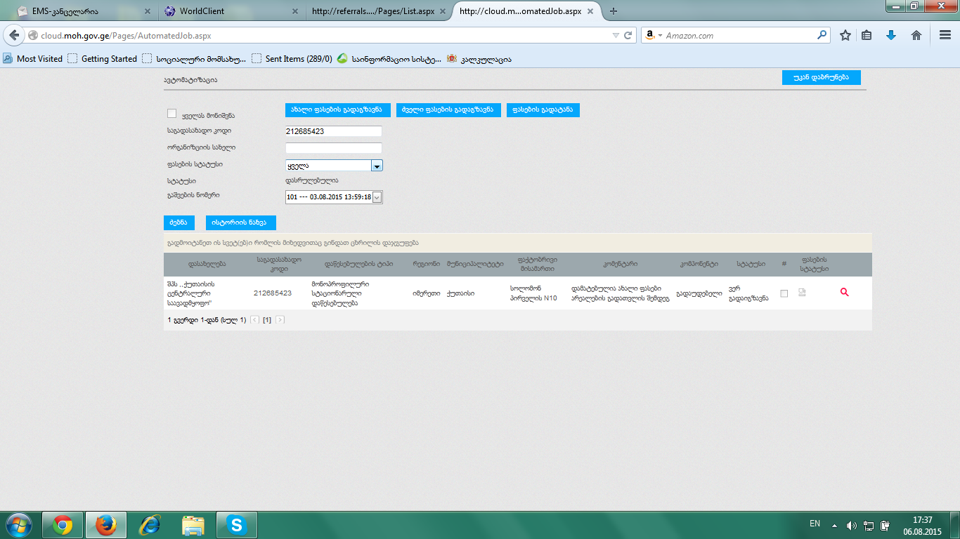 ჯობი გაეშვა 3 აგვისტოს და მუშაობა დაასრულა 5 აგვისტოს. 4 აგვისტოს ჩემს მიერ ან პროგრამისტების მიერ ვინც ამ პროცესს ეხლა სწავლობენ სატესტო კლინიკაზე gio_test_test მოხდა კომბინაციის დამატება და სავარაუდოდ ეს არის მიზეზი. აქვე მინდა ავღნიშნო ,რომ ეს არის სატესტო კლინიკა ამიტომ აღნიშნულ პორცესში არ უნდა მონაწილეობდეს და ასევე ამ მიზეზით გამორთულია გადათვლებიდან თავიდანვე,ამიტომ მსგავსი პრობლემა არ უნდა გამოიწვიოს.
