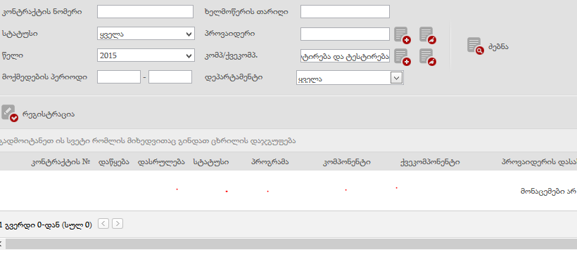 ფორმები თავისი ვალიდაციებით მზად არის, მაგრამ გადავაწყდი პრობლმას, რომ ვნახე „აივ-ინფექცია/შიდსზე ნებაყოფლობითი კონსულტირება და ტესტირება“ -კომონენტი. 2015 წელს არცერთი ხელშეკრულება არ არის დამატებული.