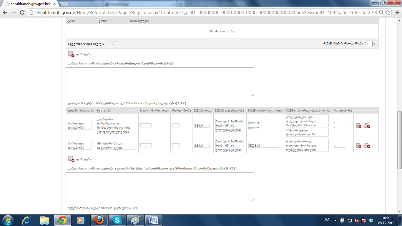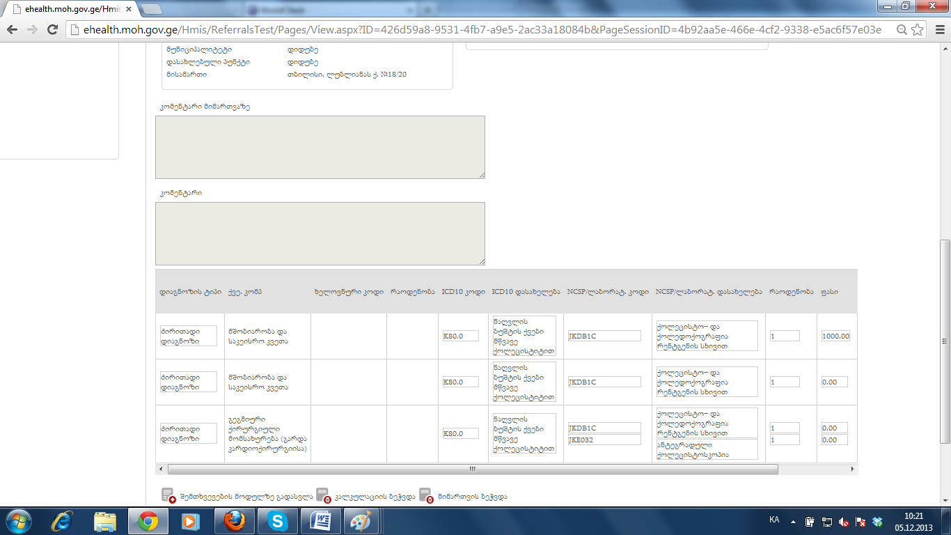 6. ეს მიმართვა ეხლა გავეცი შევდივარ და კალკულაციის გევრდზე ხდება-7. ანუ დიაგნოზი რაც წავშალე დამტკიცებულზე ის ისევ გაჩნდა უკვე გაცემულზე და ბოლოს რითაც გავეცი ის დაიგნოზი გაორმაგდა.