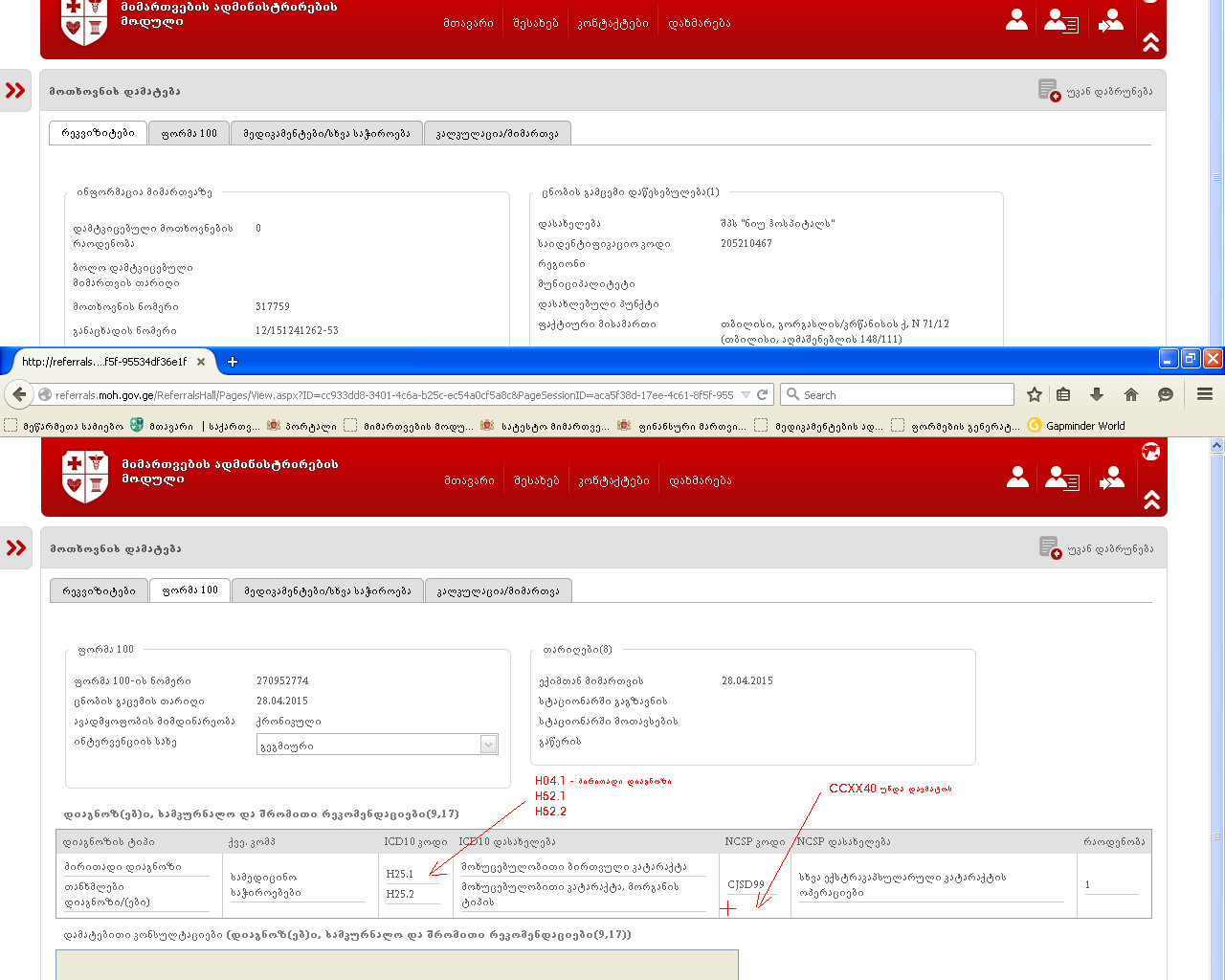 კომისიაზე დამტკიცებულ მიმართვებში გვინდა მონაცემების კორექტირება. რეკვიზიტებში და კალკულაციაში მითითებული დაწესებულება ერთმანეთს არ ემთხვევა და ამის გამო საგარანტიო იბეჭდება არასწორად, თხოვნა გვაქვს რომ დაგვიკორექტიროთ. გიგზავნი მოთხოვნის ნომრებს და სქრინებს..