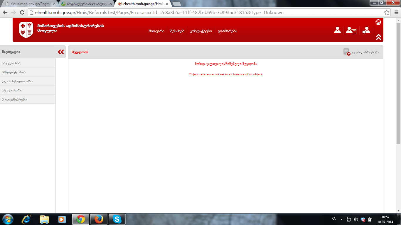 მე სატესტოზე ვიყავი და ფორმა 100-ის შენახვის დროს იგივე ერორია მგონი...პატივისცემით,