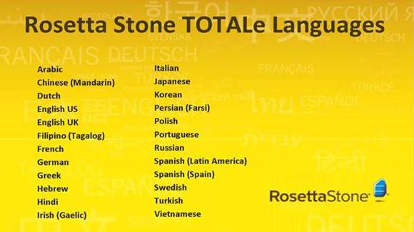 The Rosetta Stone language-learning program (including English) currently has a number of available slots. To participate, please review the list of languages below, complete the application, and forward it to Ryan LeCloux in Bethesda. You will be given a three-month license so that you can learn at your own pace and access all that the Rosetta Stone TOTALe program has to offer.