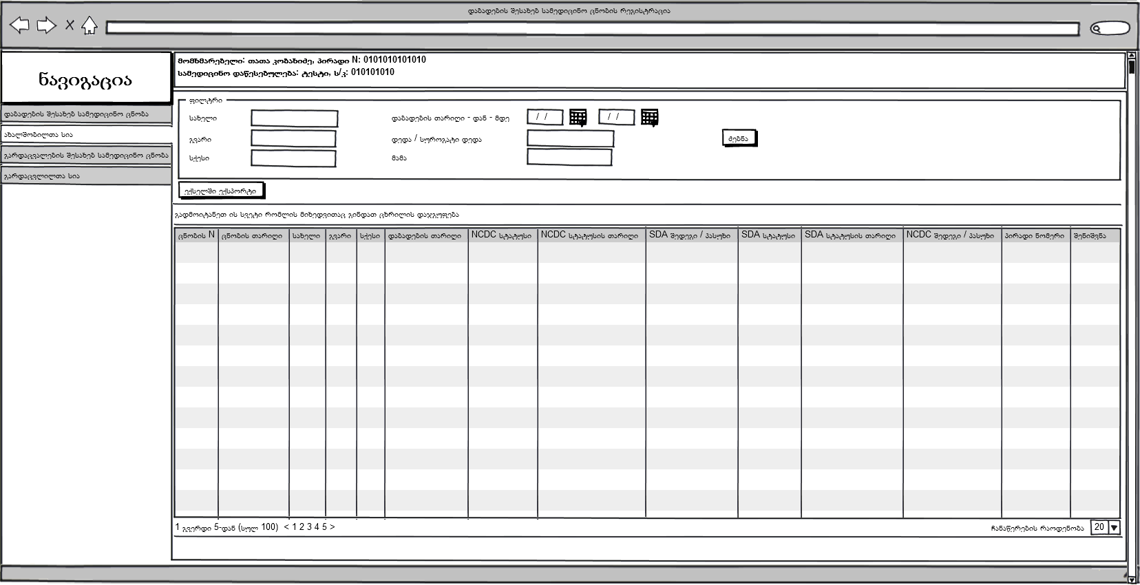 - არასამედიცინო დაწესებულებების მიერ შევსებული ცნობების გადმოგზავნის მიზნით შესაქმნელი მონაცემთა ბაზის სტრუქტურა, ლოგიკები და ა.შ).