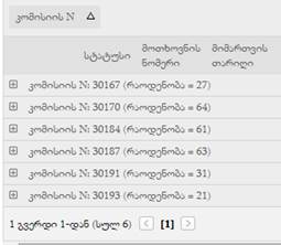 - დაჯგუფებულია ყველა რეგისტრირებული მოთხოვნა კომისიის N-ის მიხედვით