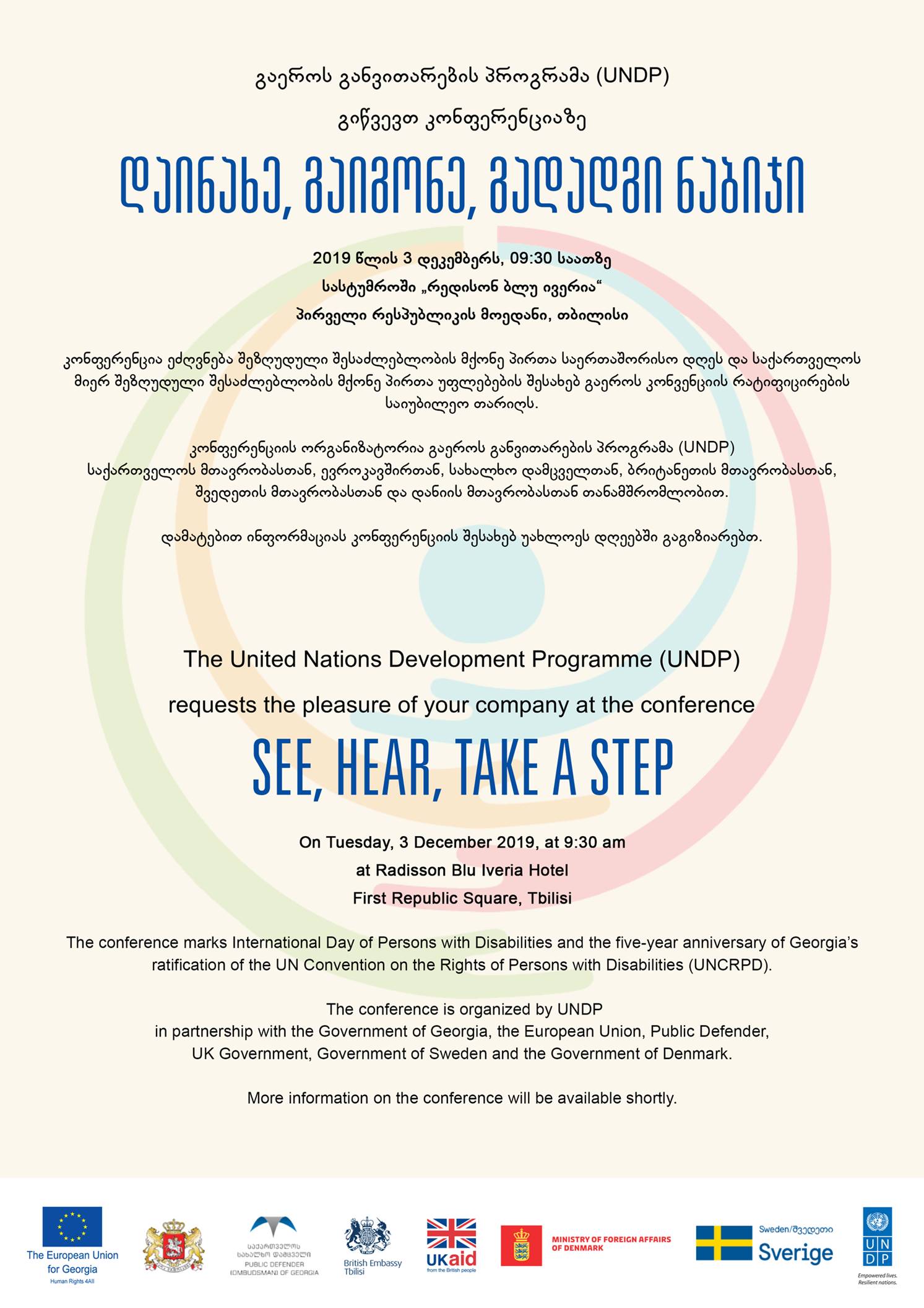 This is just a gentle reminder about the conference taking place tomorrow, marking the International Day of Persons with Disabilities and the five-year anniversary of Georgia’s ratification of the UN Convention on the Rights of Persons