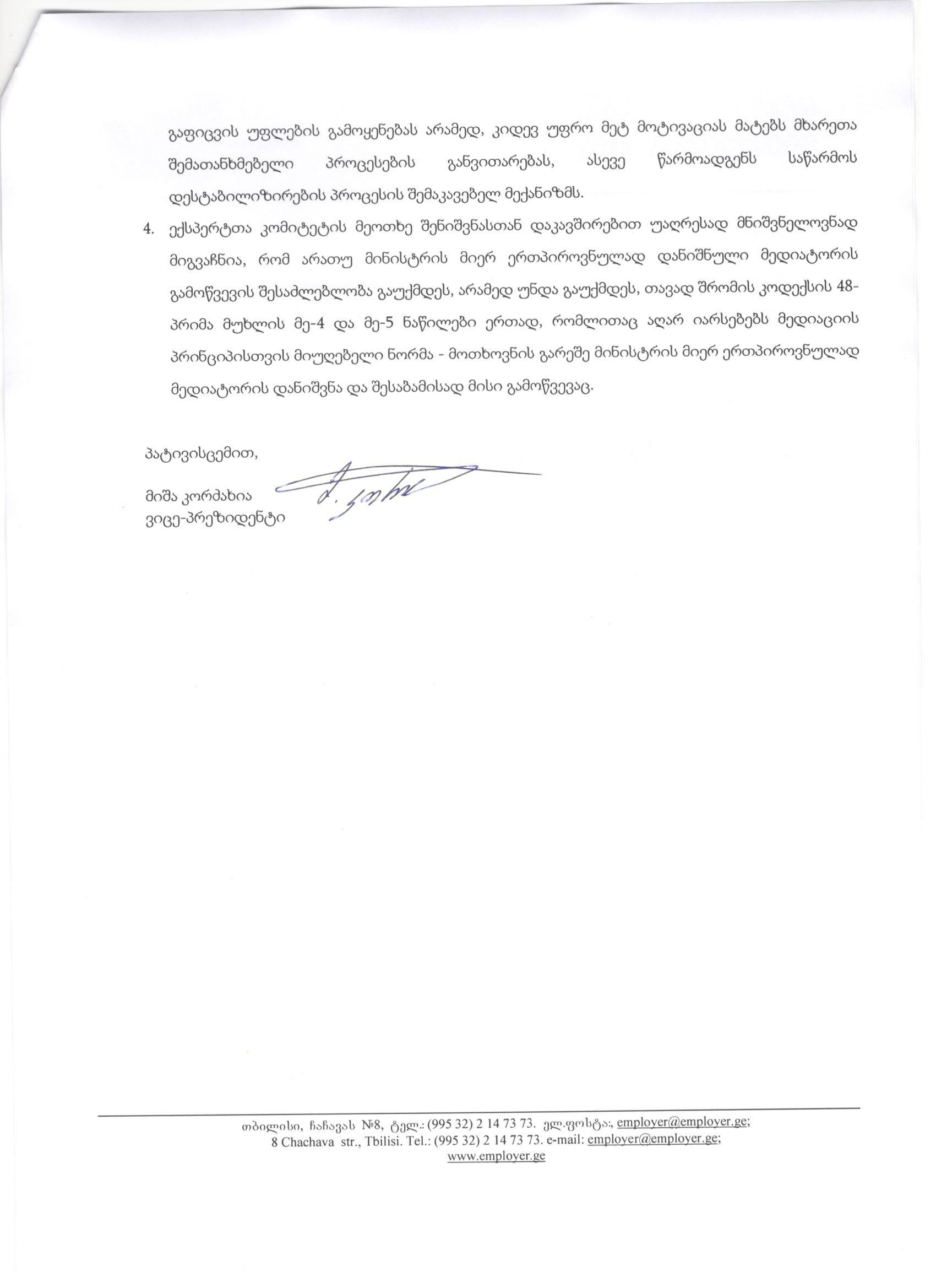 | To : | Lika Klimiashvili <lklimiashvili@moh.gov.ge>; d.metreveli@mrdi.gov.ge; nberianidze@economy.ge; rliparteliani@yahoo.com; surmavatamuna@yahoo.com; Giorgi.chanturidze@gmail.com; nika76k@yahoo.com; ilia.lejava@gmail.com; maiashavishvili@gmail.com; chikhladzemaia@yahoo.com; stskhakaia@glcc.ge; mchelidze@gsmea.ge; levan.gpf@gmail.com; nnanuashvili@bag.ge; employer@employer.ge; achkhikvadze@mes.gov.ge; international@employer.ge |