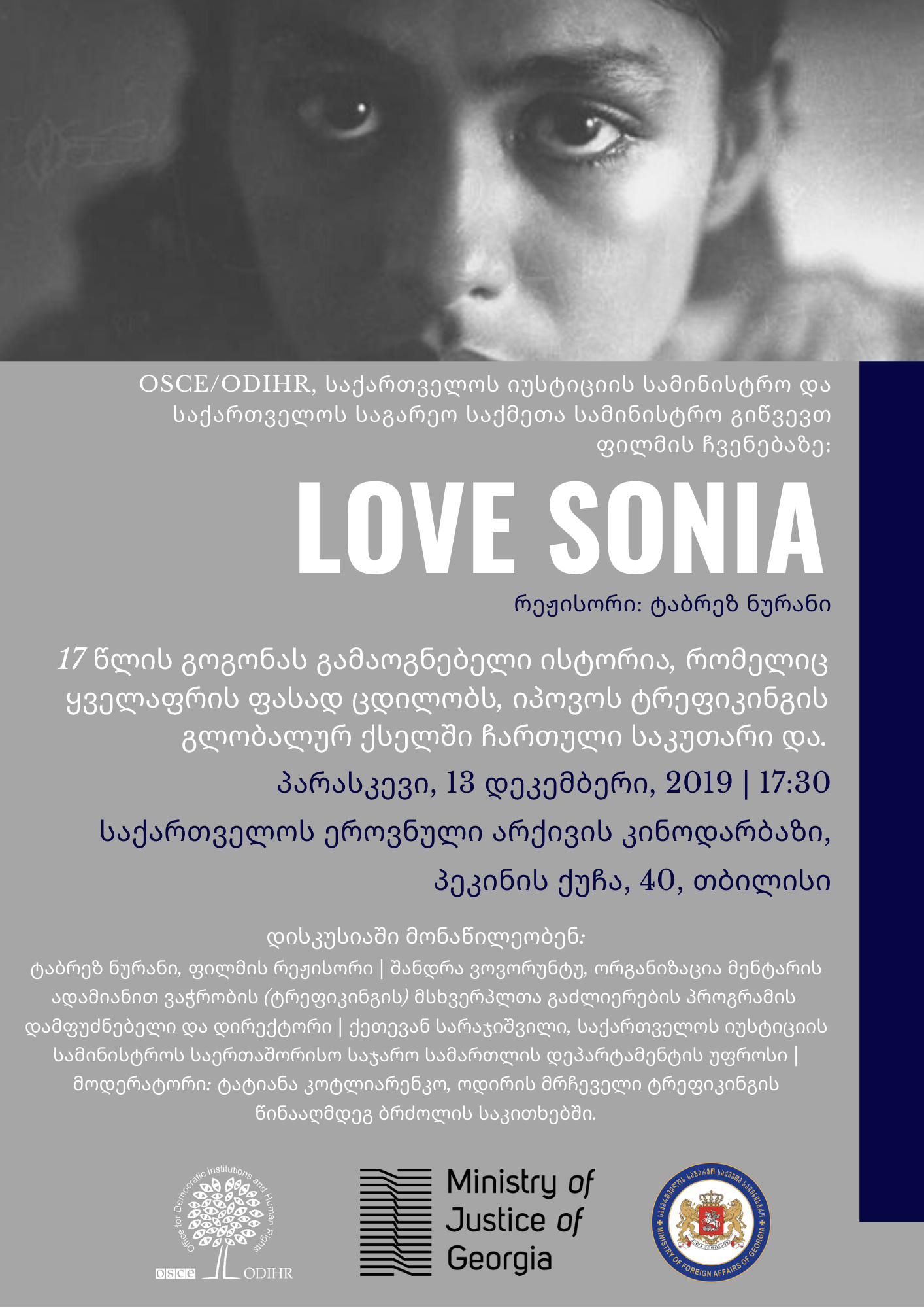 screening of “LOVE SONIA” (directed by Tabrez Noorani), which will be held on 13 December, 2019, at 17:30, in the Cinema Hall of the National