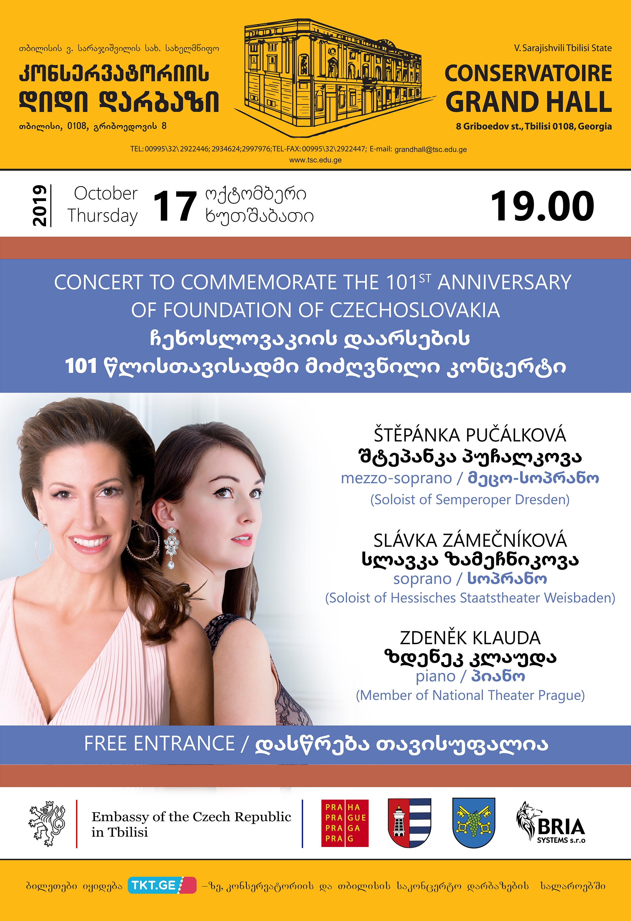 Embassy of the Czech Republic cordially invites you to the concert dedicated to the 101st Anniversary of the Independent Czechoslovak State