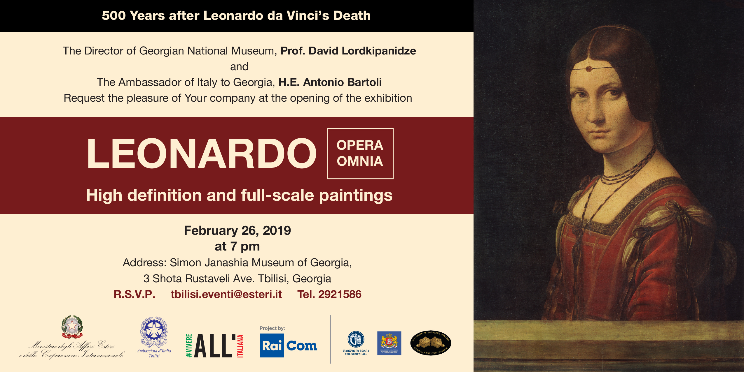 | Subject : | Invitation to the opening of the exhibition: LEONARDO-OPERA OMNIA, on February 26, 2019 at 7 pm at Simon Janashia Museum of Georgia |
